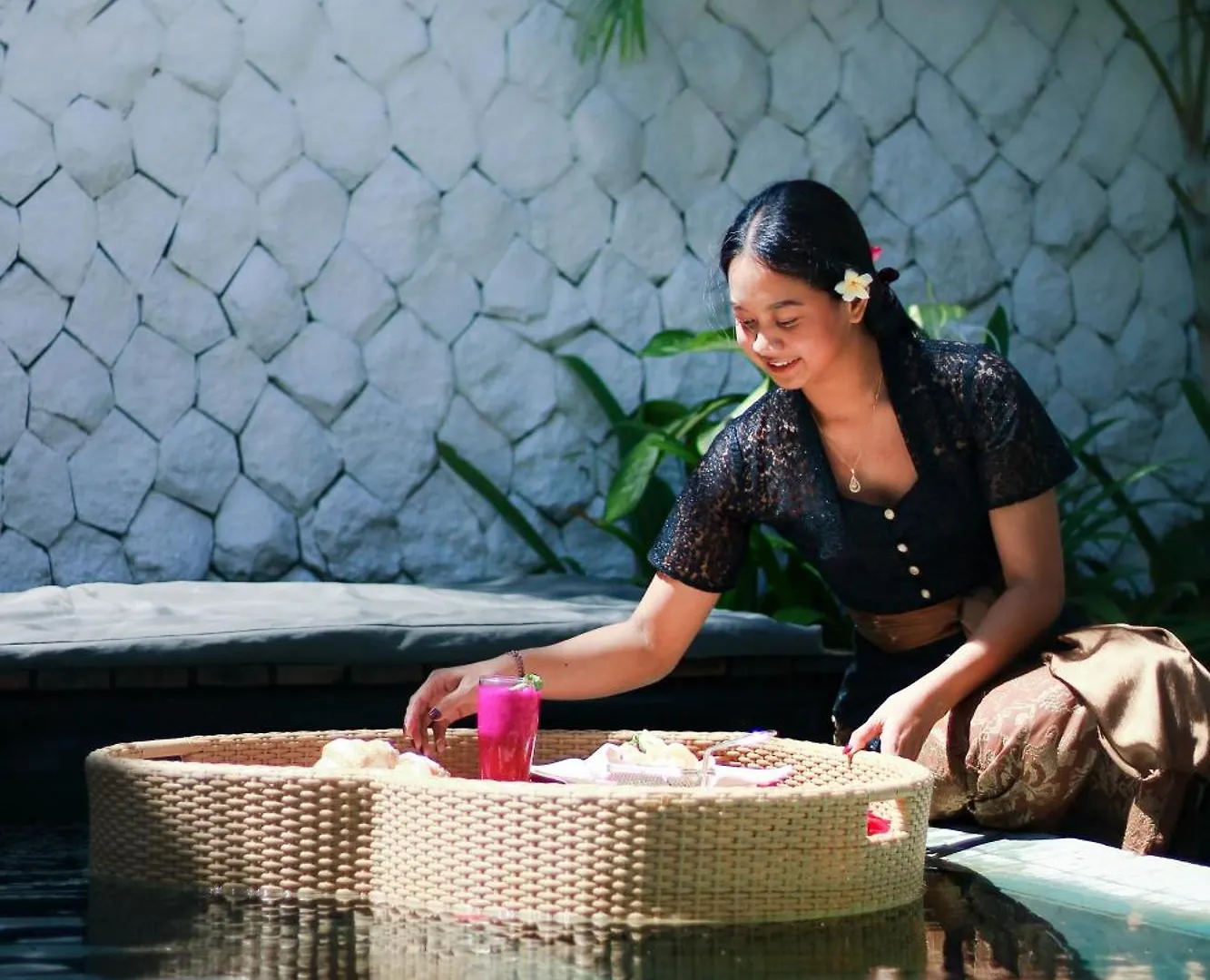 Die 9-Zimmer- Calm befindet sich im Stadtteil Petitenget und verfügt über eine sonnige Terrasse mit Blick auf den Pool.